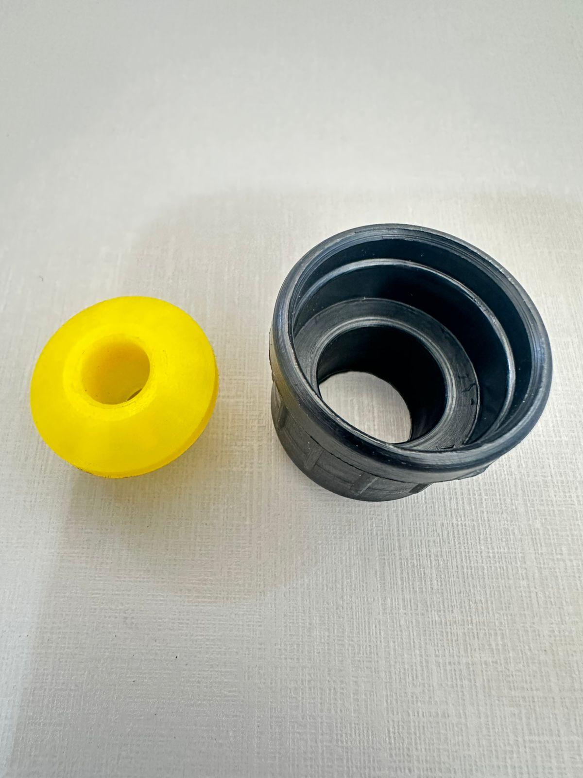 Conjunto de bucha composto por peça interna (amarela) e externa (preta), ideal para aplicação em roletes de 30mm. Fabricadas em material resistente, garantem encaixe preciso, durabilidade e ótimo desempenho na rolagem. Produto essencial para manutenção ou montagem de sistemas de transporte e movimentação