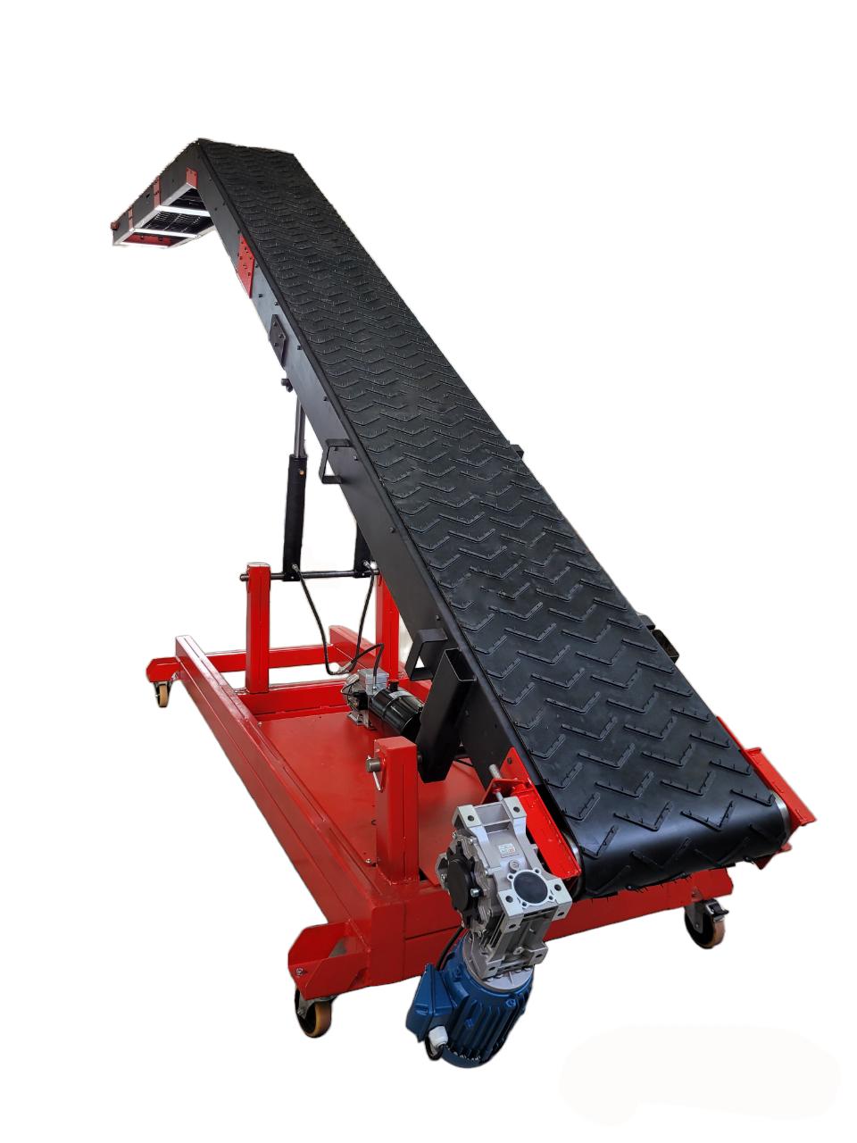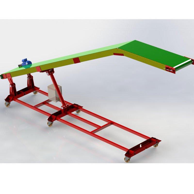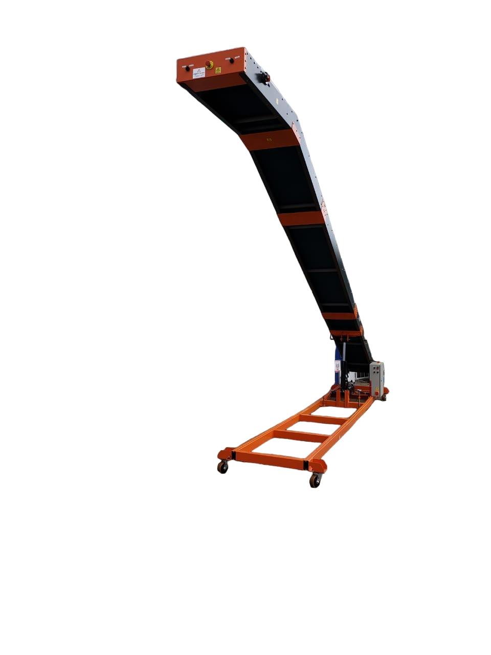 A Esteira Transportadora Elevatória é ideal para carregamento ou descarregamento de caminhões baú e carretas, pois sua forma permite que boa parte da esteira avance para dentro da carroceria diminuindo o tempo de carga ou descarga.