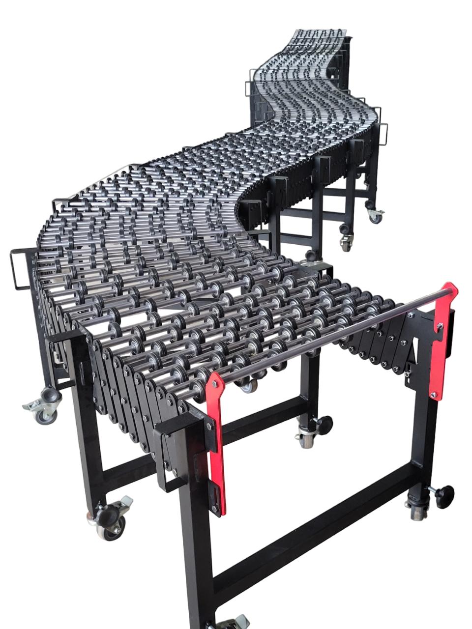 O Transportador Móvel Flexível é prático de instalar e pode ser utilizado em várias formas com acoplamento em diversos tipos de esteiras auxiliares, conferindo versatilidade.