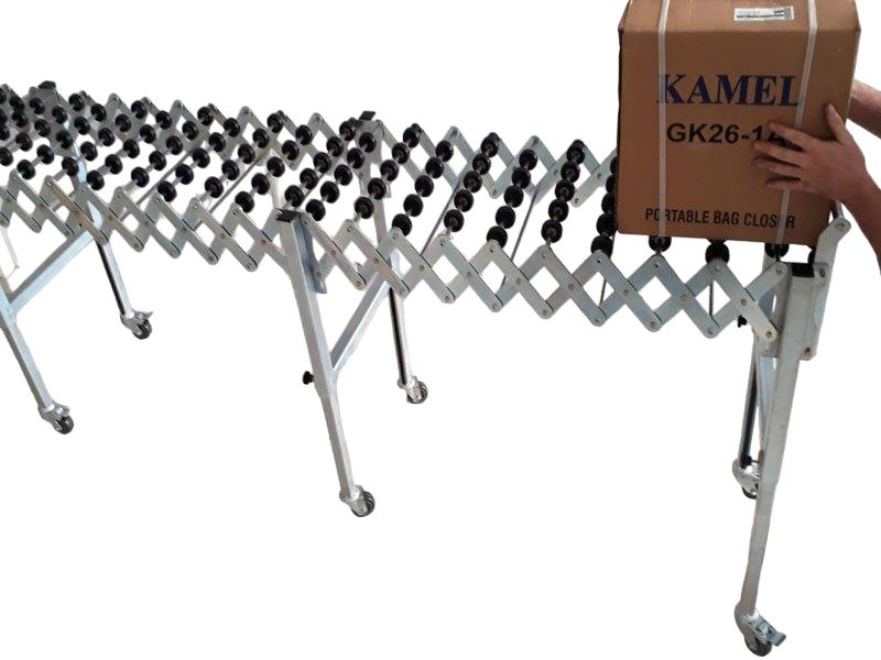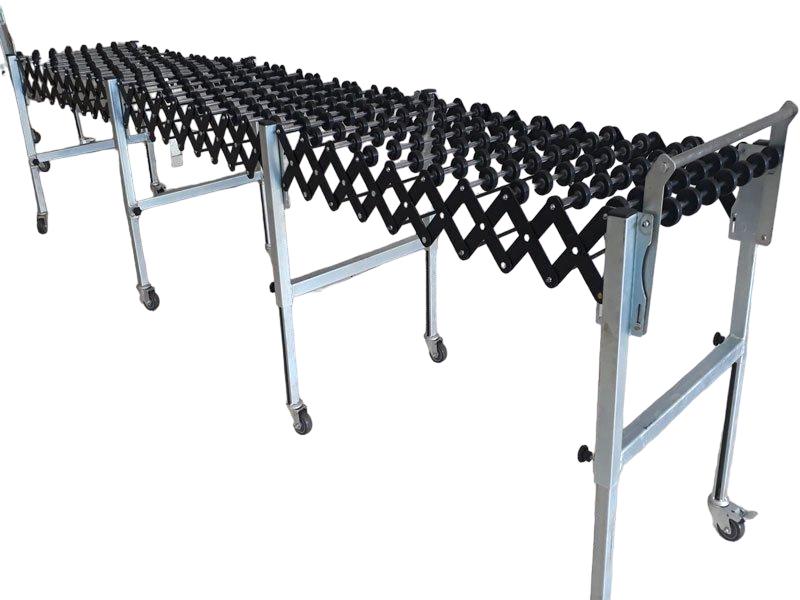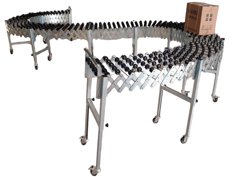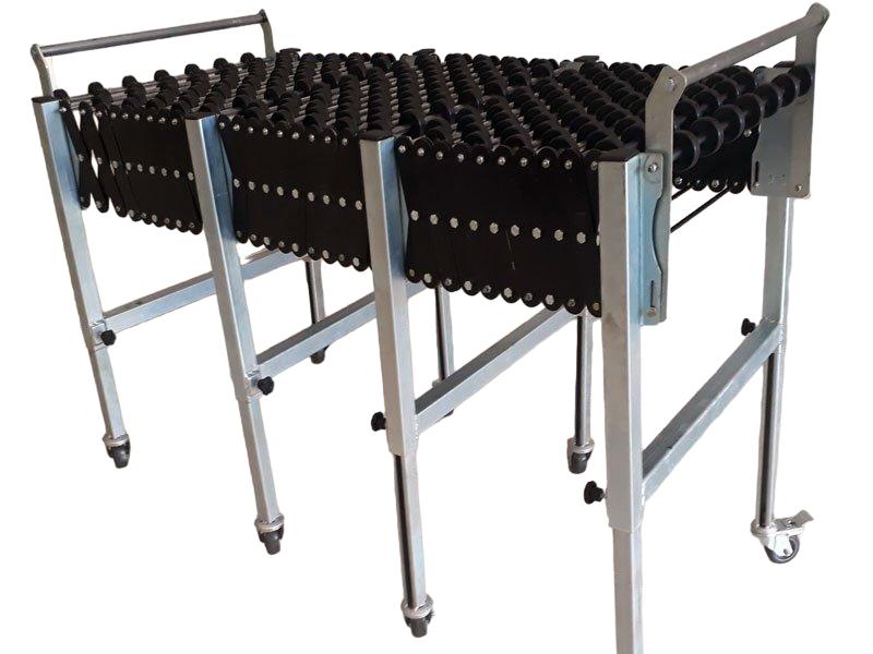 A Agri Equipamentos projetou a esteira móvel flexível com uma estrutura e forma construtiva, montada sobre rodas giratórias com freio total. Possui estrutura metálica, tipo pantográfica, confeccionada em aço carbono, equipado com rodízios, destinados principalmente à movimentação de material com fundo liso ou cilíndrico pelo sistema gravitacional.