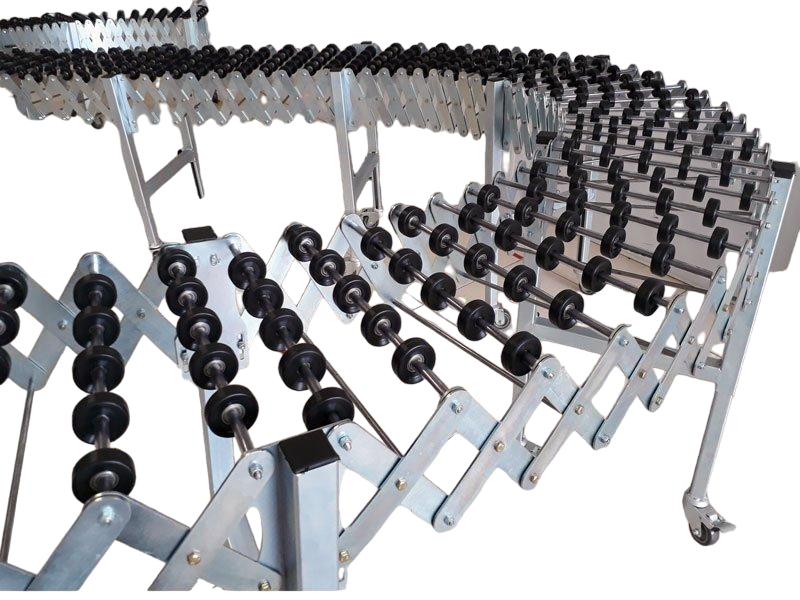 O mesmo sistema pantográfico que permite a expansão da esteira, também possibilita a formação de curvas. É possível estende-la por todo depósito e formar curvas de 90° e 180°, trazendo agilidade aos processos.