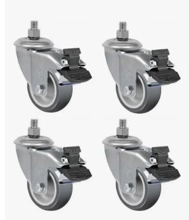 Rodízio giratório de 3 polegadas com freio e fixação por rosca, ideal para movimentação de equipamentos, carrinhos, bancadas e estruturas industriais. Oferece mobilidade com segurança, graças ao sistema de trava que impede a rotação e o deslocamento da roda quando acionado.