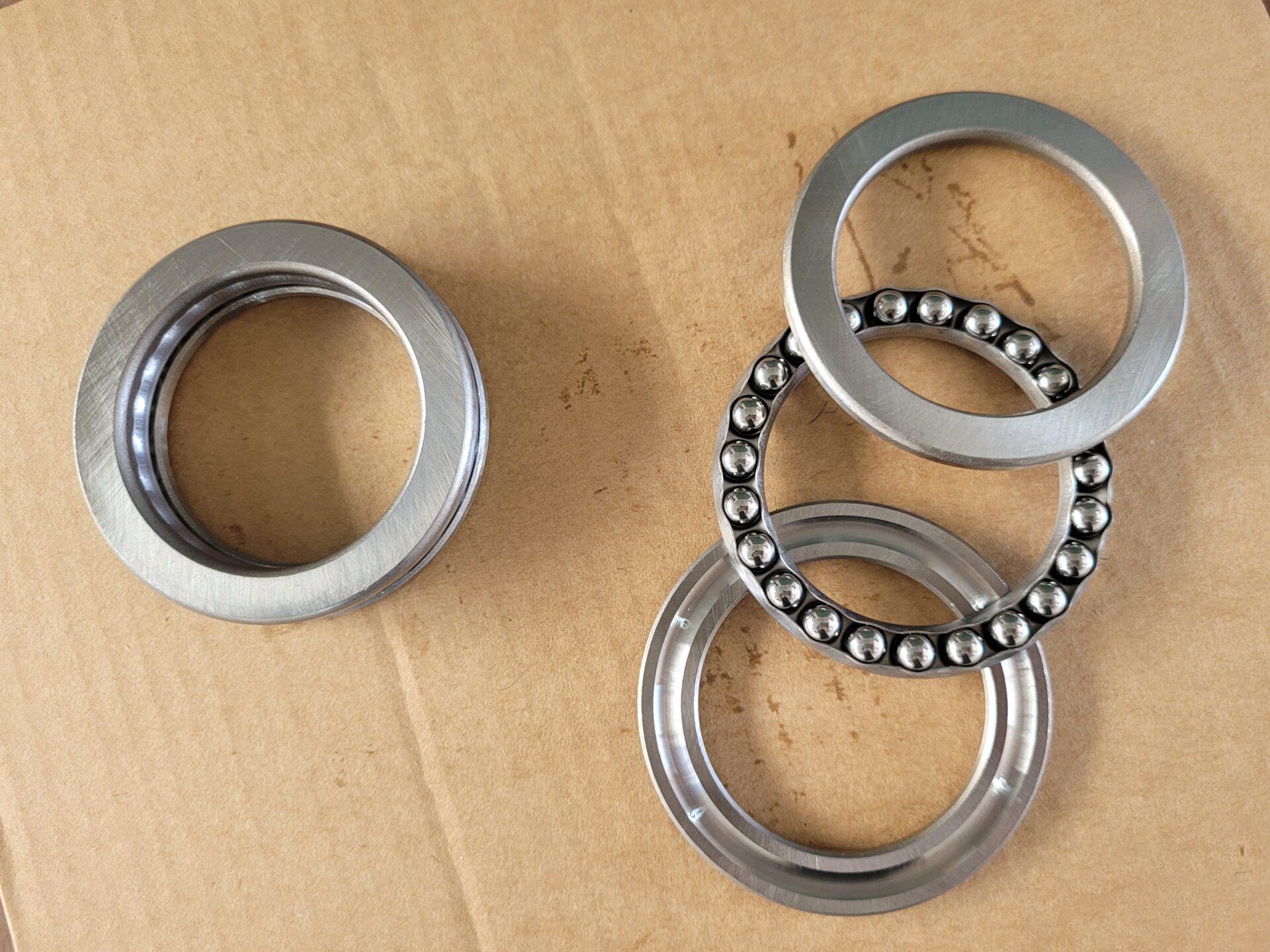 O rolamento serve para manter o eixo na direção adequada, evitando desgaste da peça e absorvendo o impacto de cada rotação. Esse modelo de rolamento suporta cargas axiais; aquelas que atuam em um eixo central.